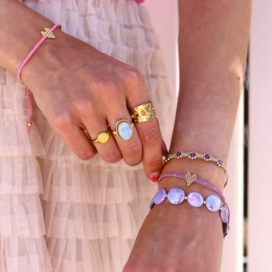 Armband lila met maansteen goud