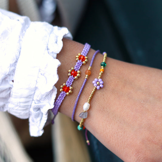 Geknoopte armband met amethist bloemetjes