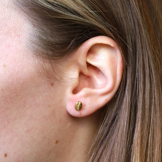 Vergoldeter Ohrstecker mit Kreis und drei Kugeln