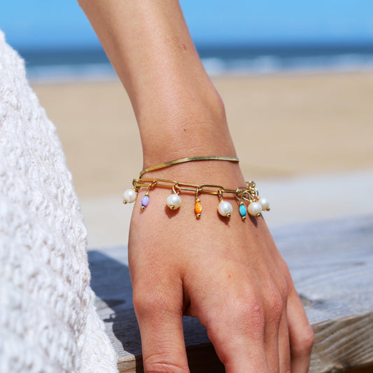 Armband aus Edelstahl mit Muschelkugeln