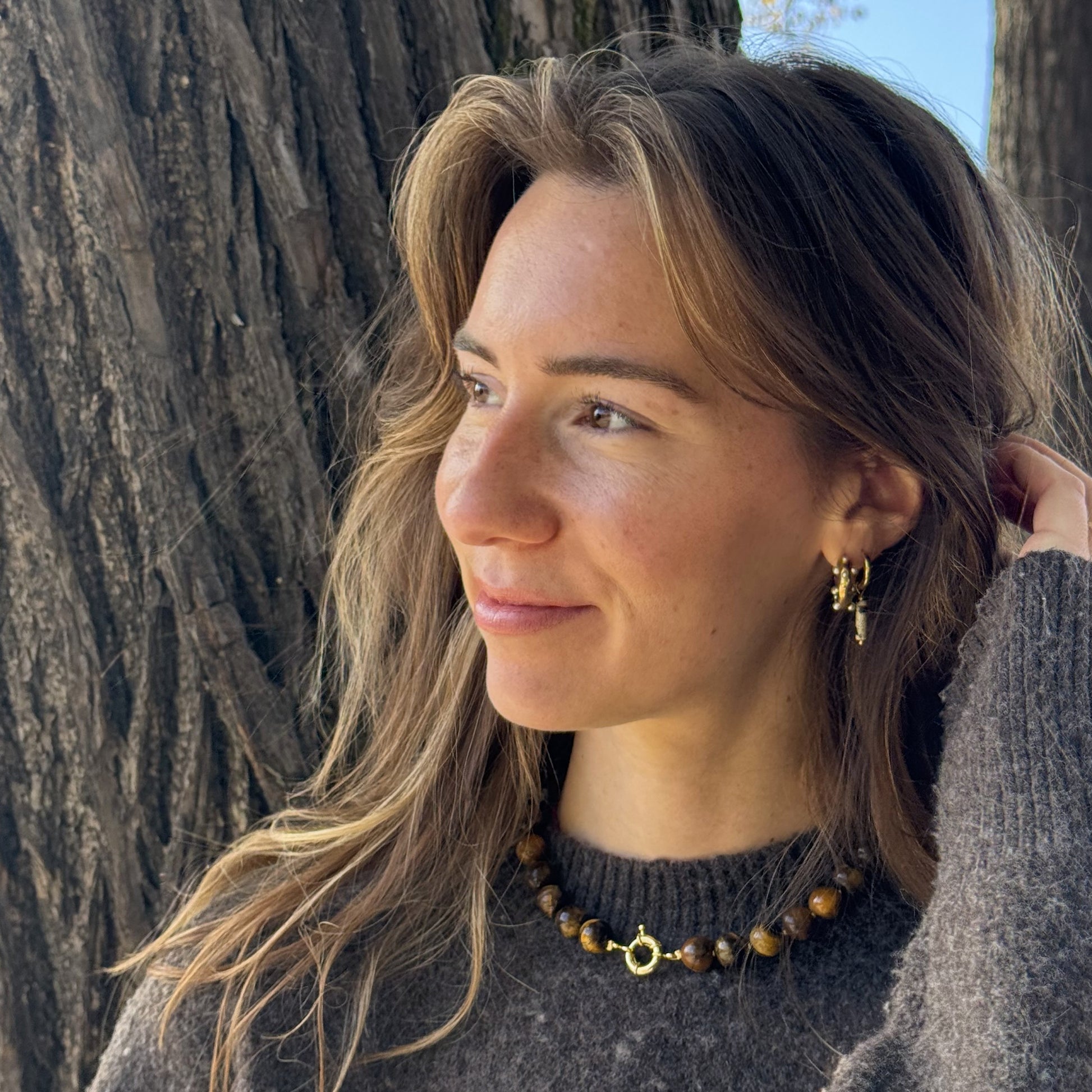 Perlenkette - Tigerauge mit Karabinerverschluss gold