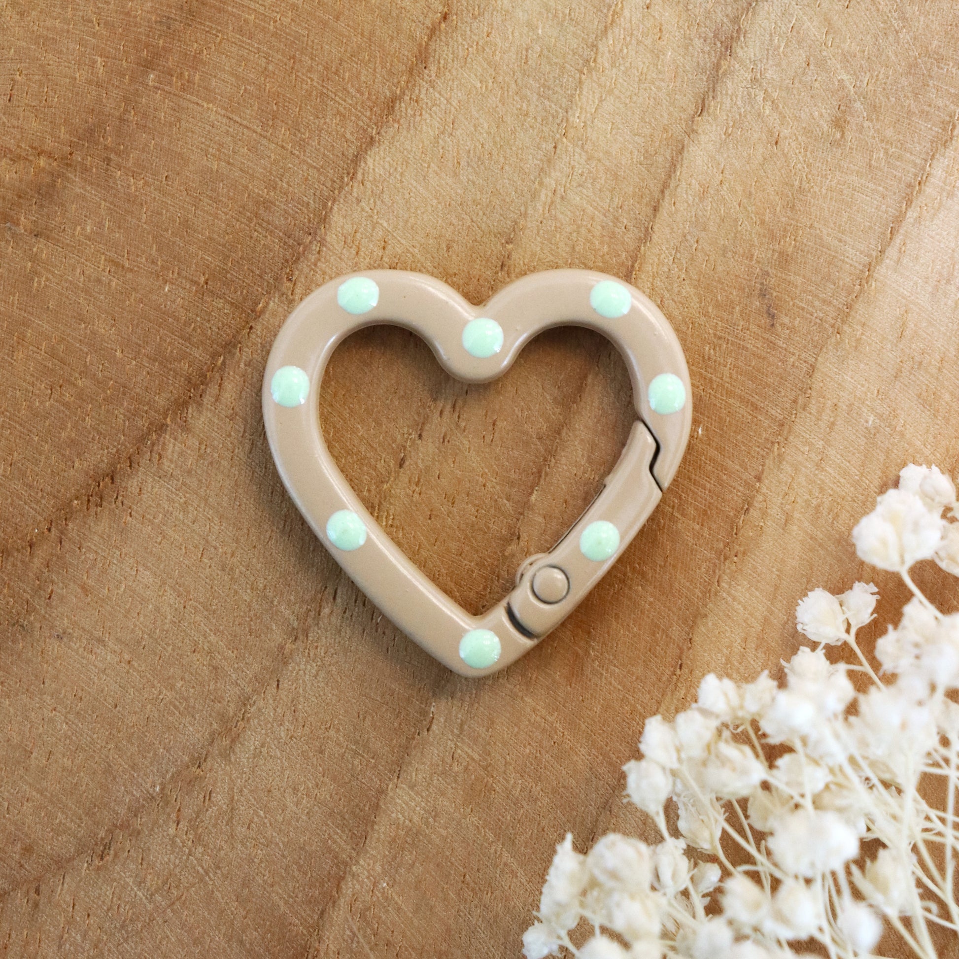 Schlüsselanhänger Herz - beige mit hellgrünen Punkten