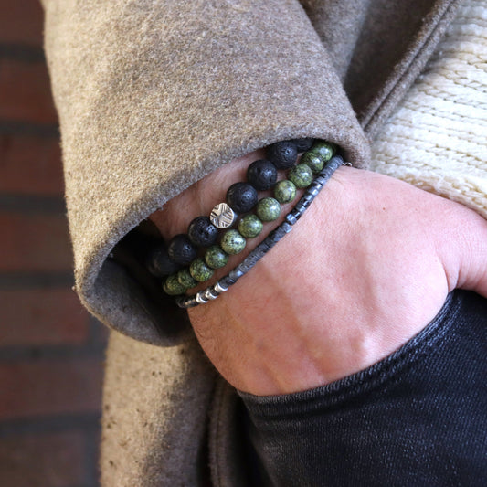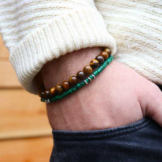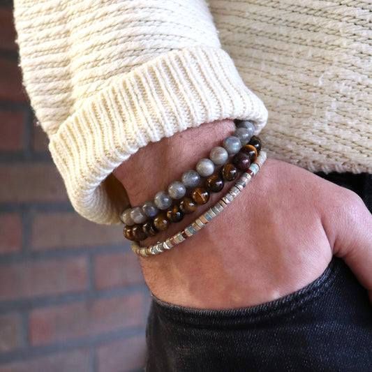Men's bracelet with labradorite, aquamarine and tiger's eye