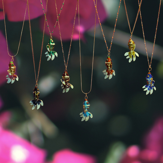 Necklace charm - cloisonne fish copper