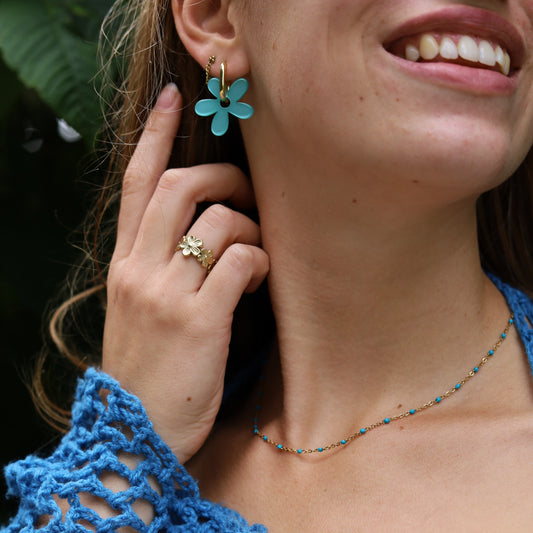 The materials we use to design our jewelry are DQ metal, 925 sterling silver, gold plated, stainless steel, miyuki, and natural products. Our products are hypoallergenic and of good quality.