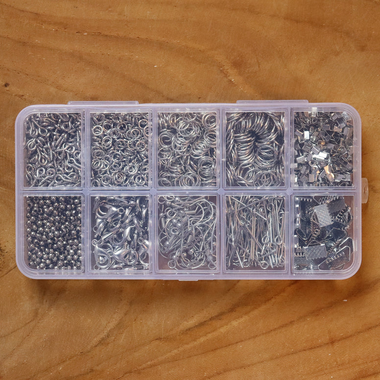 Gevulde kralendoos benodigdheden zinklegering  - zilver