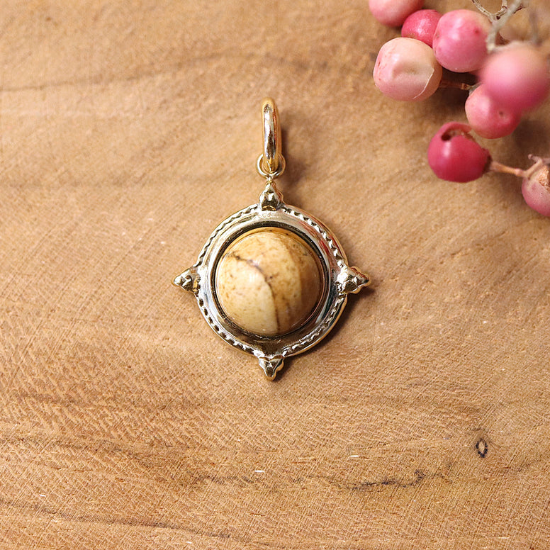 Kettingbedel stainless steel - goud met bruine jaspis