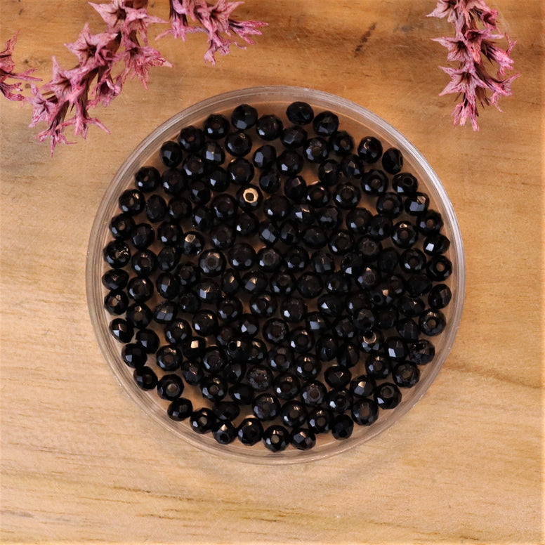 Rondel facetkralen 2x3 mm - Jet